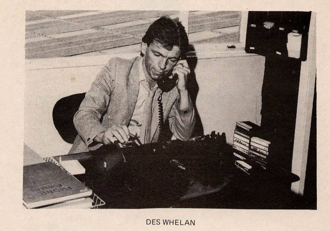 Main image: Des Whelan, station manager and programme controller, 1980. (Image from WLR yearbook.)