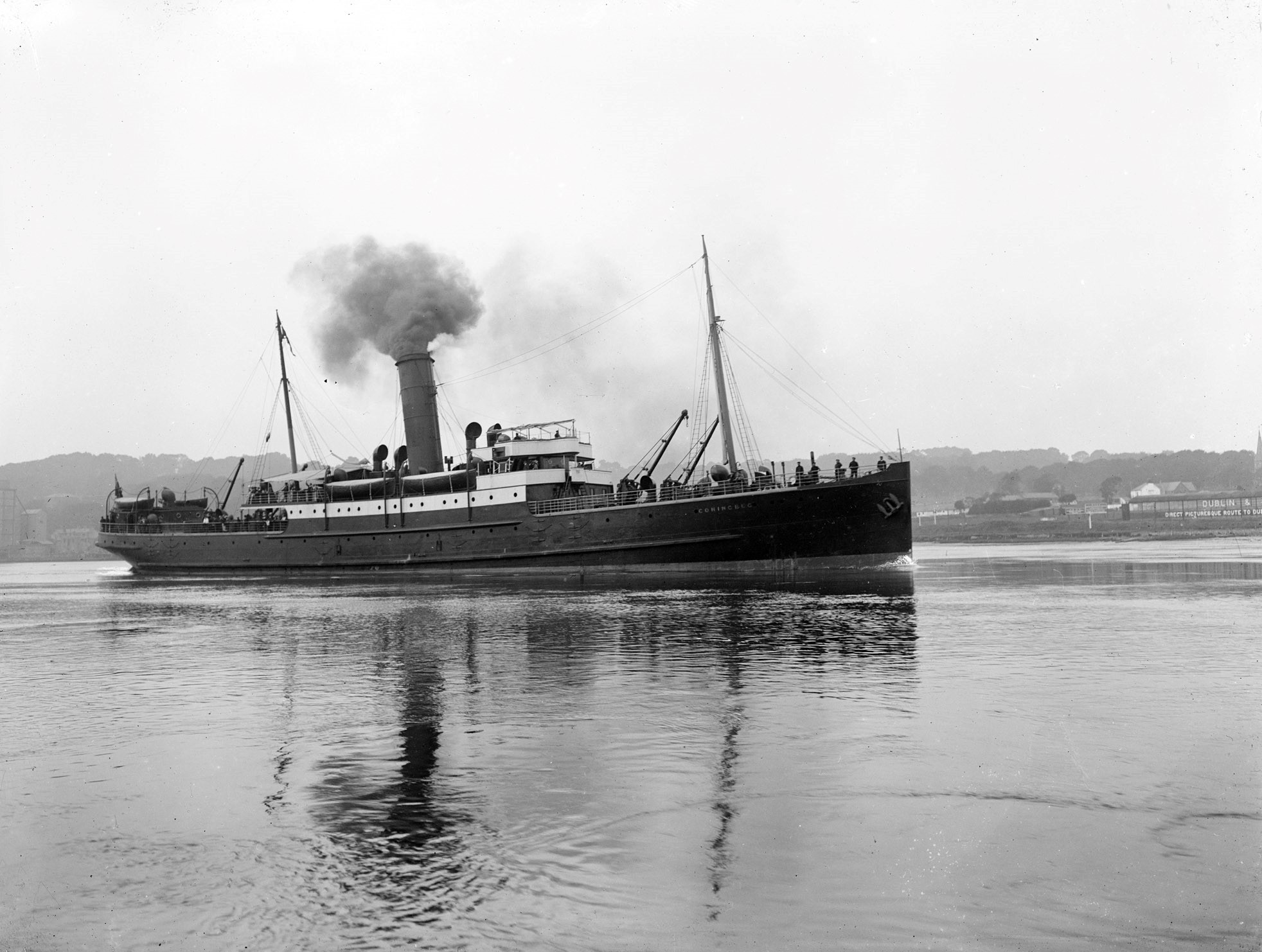 Top photograph: The ill-fated S.S. “Coningbeg”, pictured sailing into Waterford harbour from Adelphi Quay in August, 1913. Thirty-four locals would later lose their lives when Germans torpedoed it during WWI. [National Library of Ireland]