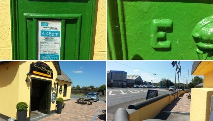 At that time the public house at The Sweep was known as O’Briens, I think. I’ve a vague recollection that the post box was previously located at the Kilmeaden entrance before being embedded in the wall of the pub, but I could be mistaken.