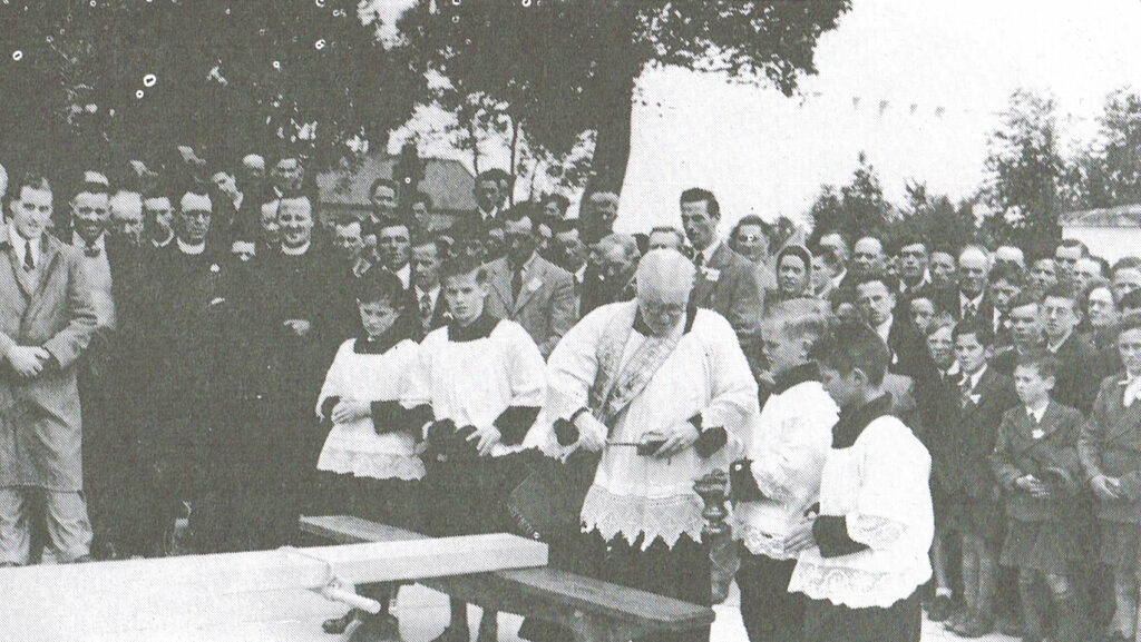 Religion was a great driving force back then. In my schooldays Father Murray was the parish priest, having his residence in Ballyduff. The two curates resided in Portlaw. Father Murray was a laid-back type of individual who didn’t believe in rushing through the mass – it often took over an hour. If Fr. Murray was preaching and someone coughed he’d wait until the person was done coughing before continuing. Cars were just starting to make inroads in the early fifties. Father Murray had one but he didn’t believe in stopping before crossing main roads. He used fly across the main road at Matthews Cross looking neither left nor right. If Father Murray was a marathon man saying the mass then one of the curates, Fr. McGrath, was a sprinter; he completed the mass ritual in twenty minutes flat. The mission when it came about was a big event in the parish, with some fiery missioners frightening the living daylights out of the congregation. People, in general, believed absolutely in the afterlife. Another custom then was the priest reading publicly off the alter how much each family contributed towards the Easter dues.