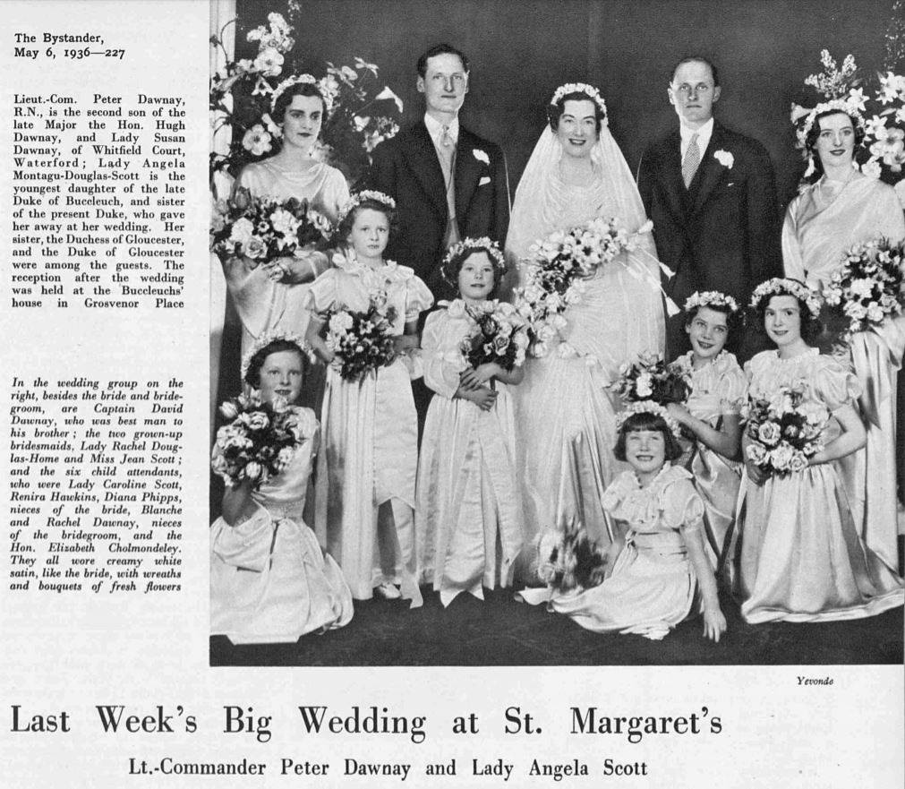 Katharine, also an accomplished horsewoman, married her cousin, future Major-General David Dawnay, son of her aunt Susan (née Beresford) and the late Major-General Hugh Dawnay, amid much fanfare at Curraghmore in 1926.
